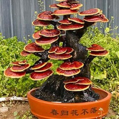 金隆菇业创出观赏灵芝家里办公室观赏品 活体嫁接灵芝盆景