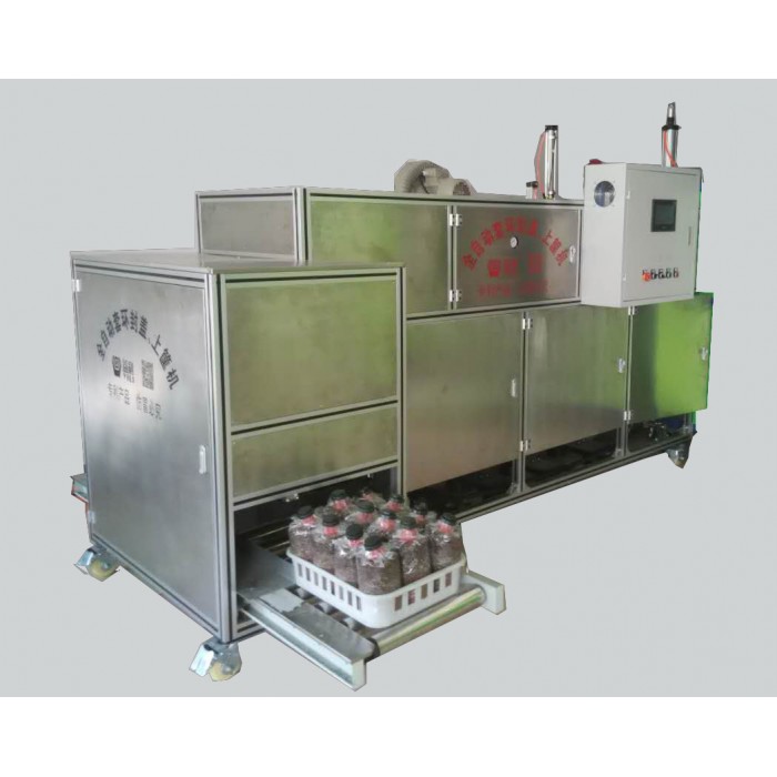 智能袋装食用菌混合料全自动套环、插杆、封盖、上筐机集自动套套环、自动插菌棒、自动盖盖子、自动出包及上筐、自动上架等一体化机械,针对种植黑木耳、杏鲍菇、金针菇、秀珍菇、海鲜菇等食用菌种植设计,在全国率先实现食用菌袋栽,自动套袋、自动套环封盖一体化机械操作“零”的突破,开创了食用菌机械迈向智能自动化生产的新纪元。